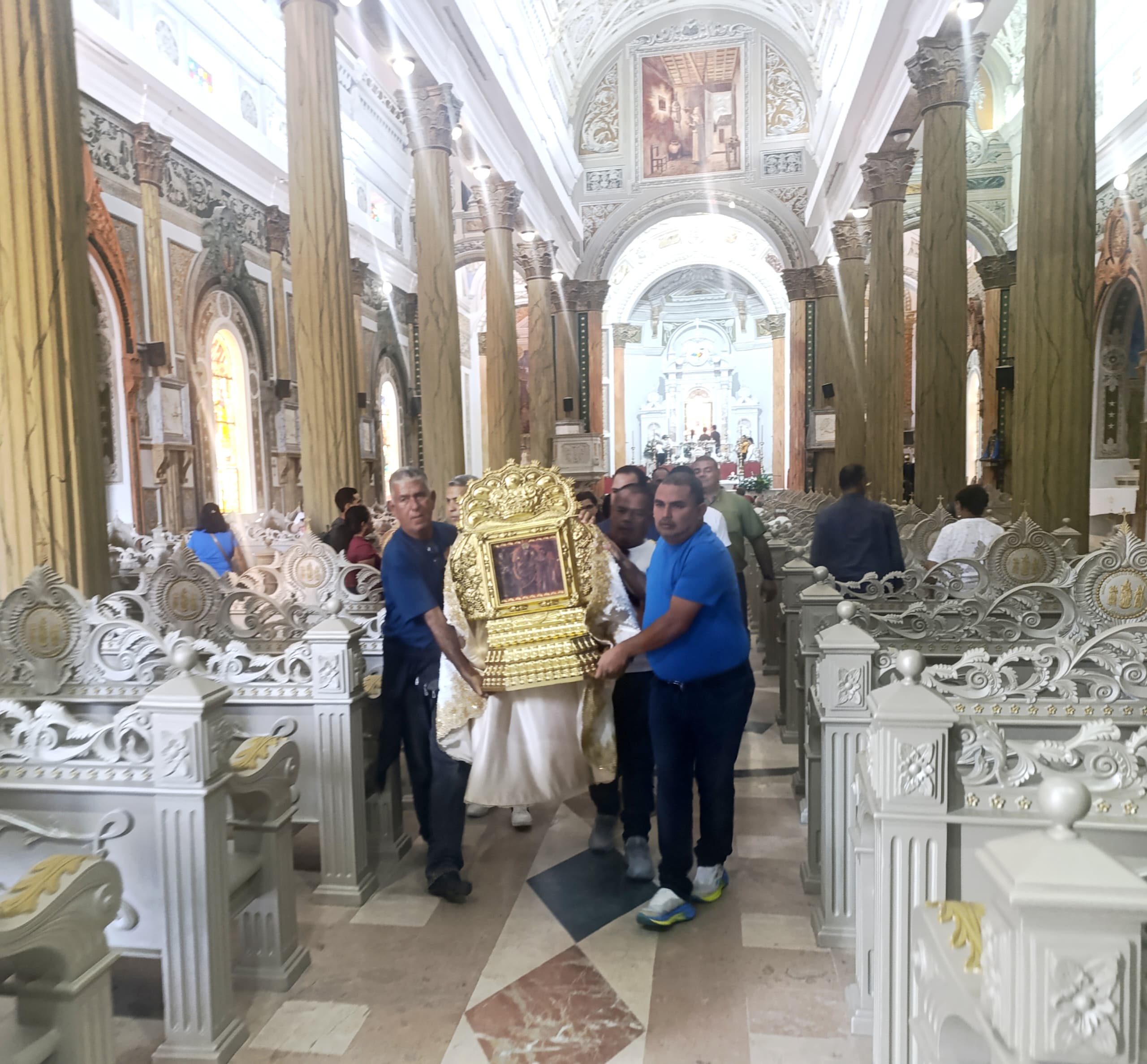 Prensa Alcaldía de Cocorote.— En un emotivo acto cargado de fe y espiritualidad, el alcalde del municipio Cocorote, Pedro Bolaños, junto a un grupo de devotos se trasladó hasta la ciudad de Maracaibo, estado Zulia, para recibir la réplica de la imagen de la Virgen de La Chiquinquirá. La ceremonia de bendición tuvo lugar en la Basílica de Nuestra Señora de Chiquinquirá, donde se celebró una misa solemne con participación del coro eclesiástico que hace vida en la Iglesia de San Jerónimo.